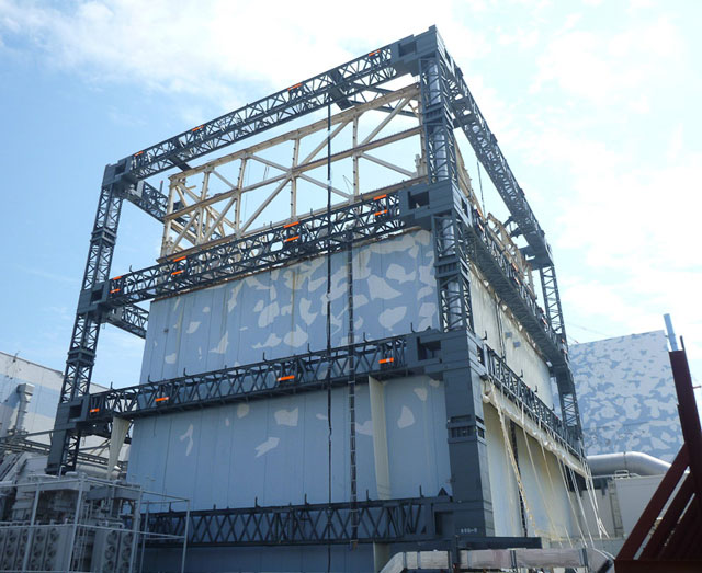 Pour éviter autant que possible la dispersion de poussières radioactives, une structure métallique recouverte de plastique est en cours d’installation autour du bâtiment du réacteur 1 depuis début juillet. Le même dispositif devrait être installé à terme sur les bâtiments 3 et 4, également très endommagés. Le site de la centrale est régulièrement aspergé de résine pour maintenir au sol les poussières radioactives.