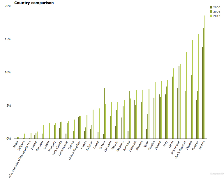 Le rapport européen consacre un chapitre entier à l’examen de l’agriculture bio dans l’Union européenne. En termes généraux, seuls 5,7 % de la surface agricole totale utilisée en Europe sont consacrés au bio. Aucun objectif n’est fixé au niveau européen dans ce domaine. En valeur absolue, les pays consacrant les plus grandes superficies aux cultures bio sont l’Espagne, l’Italie et la France. Dans les nouveaux pays qui ont rejoint l’Union européenne en 2004, cependant, les surfaces ont augmenté de 13 % chaque année entre 2002 et 2011. Enfin, les pays où la proportion de la culture bio (en terres cultivées) est la plus élevée sont l’Autriche (18,6 %), la Suède (15,8 %) et l’Estonie (14,9 %). La France ne se trouve qu’au vingtième rang pour la part relative de ses cultures bio. Pour Ronan Uhel, « l’opinion habituelle est que l’agriculture bio ne peut pas répondre à la demande. Or en Autriche, en Allemagne, dans certaines régions françaises, c’est bien le cas ! Mais cela marche lorsqu'une approche intégrée est adoptée : les circuits de distribution, par exemple, sont davantage organisés autour de la demande locale ».