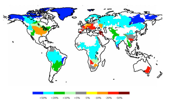 Une évaluation du cycle hydrologique mondial au jour le jour et une analyse de la rareté de l’eau ont ainsi permis aux scientifiques d'attirer l’attention sur la vulnérabilité de l’approvisionnement en eau dans les pays subtropicaux. La consommation d'eau s'accroît, l’utilisation des terres à des fins agricoles augmente et les conditions climatiques évoluent. En s’associant, ces trois phénomènes pourraient entraîner une réduction de l’eau disponible d’au moins 30% dans les années à venir.