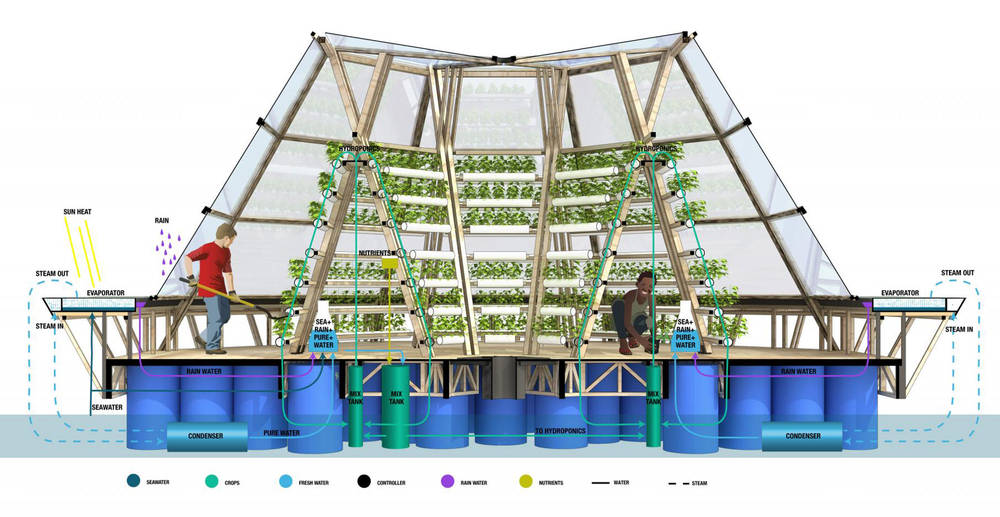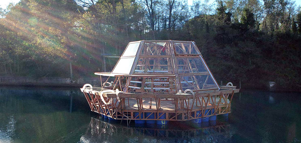 La Jellyfish barge est construite à partir de matériaux simples : bois, bidons, tuyaux de plastique recyclés. Selon ses concepteurs, elle pourrait permettre aux pays où l’eau douce est rare de développer une agriculture propre et efficace à moindres frais. Le projet semble rencontrer un certain succès puisqu’il a récemment gagné le premier prix du concours « Entreprise + Innovation + Travail » de la région toscane.