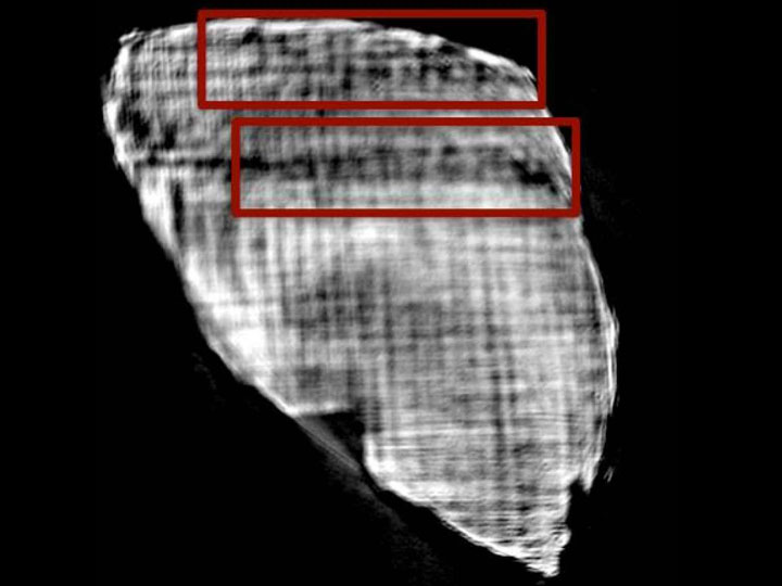 L’obstination des scientifiques est finalement récompensée grâce au Synchrotron de Grenoble. Des chercheurs du CNRS (Institut de recherche des textes), du CNR italien et du Synchrotron sont parvenus à détecter des lettres et même des mots à l’intérieur d’un rouleau carbonisé. Leur technique est présentée dans un article de la revue Nature communications du 20 janvier.