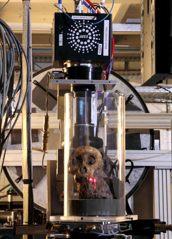 Australopithecus sediba a en effet été examiné de la tête aux pieds, chacune des parties de son anatomie livrant son lot de révélations et de surprises. Ainsi, dans le plus grand secret, le crâne du jeune enfant (MH1) a été soumis, en février 2010, à l’intense rayonnement de l’ESRF (European Synchrotron Radiation Facility) de Grenoble. Cet accélérateur de particules permet d’obtenir une résolution exceptionnelle pour un fossile de grande taille, ici un crâne de 20 cm de diamètre… Et sans l’endommager, puisque les chercheurs n’ont pas besoin de séparer l’os de la gangue de pierre qui l’enserre.