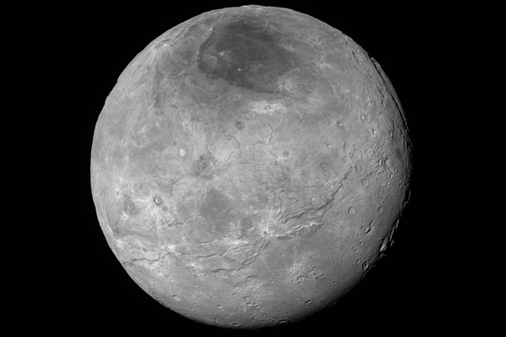 Dernière image, celle de Charon, le principal satellite de Pluton photographié ici avec une résolution inégalée. À l’instar de Pluton, ici encore, les clichés témoignent d’un passé géologique très mouvementé.