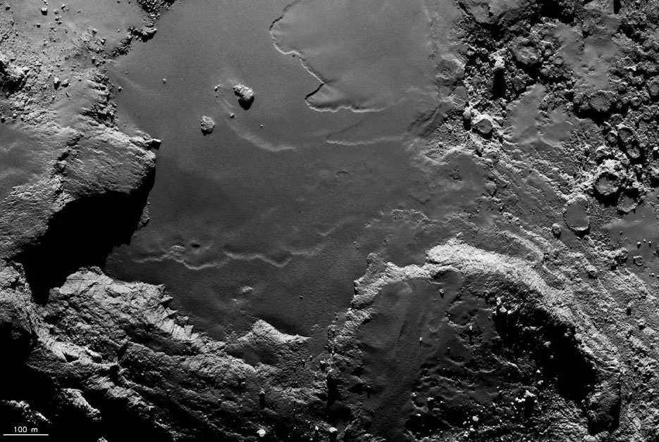 Autre constat, la surface superficielle de la comète – quelques centimètres sous la surface – serait, dans les régions illuminées par le Soleil, fortement déshydratée.