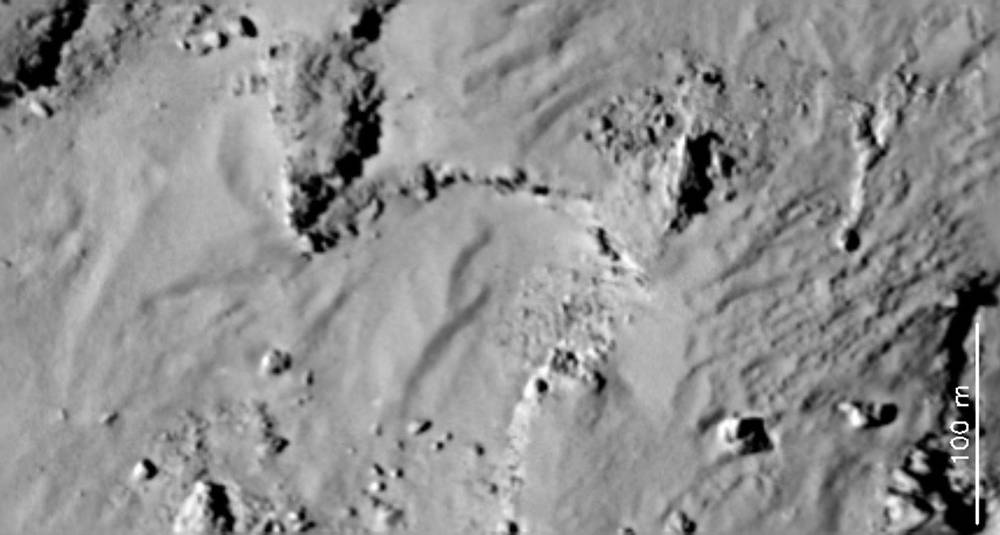 Les structures géologiques visibles de Tchouri – qui lui confèrent une apparence jamais observée auparavant sur un objet céleste – résulteraient surtout de phénomènes d’érosion, d’effondrement et de nouveaux dépôts poussiéreux. On savait déjà – premier sujet d’étonnement – que la comète 67P était composée de deux lobes unis par un « cou » étroit. Mais les observations récentes des instruments Miro, Virtis et du système infrarouge Osiris montrent que sa surface se caractérise par une grande diversité de paysages : vastes surfaces planes, ondulations, traînées de poussières, falaises… et même des dunes, étonnantes en ce site dépourvu de vent et d’atmosphère.