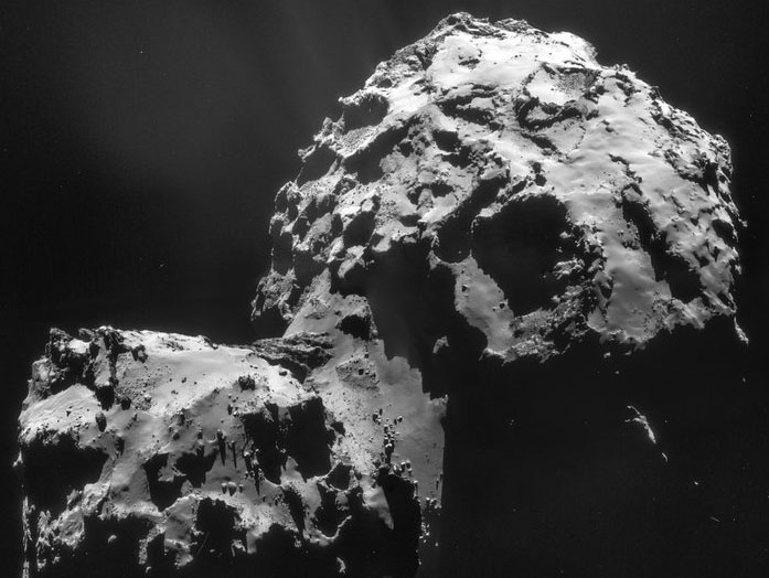 Ce ne sont certes pas les tout premiers résultats relatifs à la comète. Ainsi, l’analyse de son eau – parue dans Science du 10 décembre 2014 – permettait de réfuter l’hypothèse de l’origine principalement cométaire des océans terrestres. En effet, sur Tchouri, le rapport entre les deutériums – atomes lourds cousins des atomes d’hydrogène – et les molécules de H2O est trois fois supérieur à ce qu’il est dans les océans terrestres.