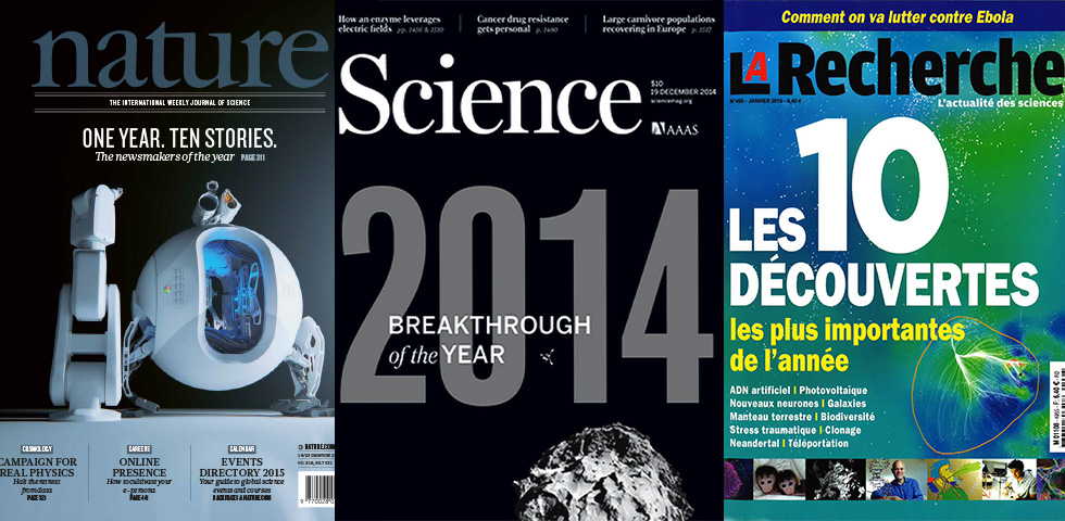 Nature, Science, New Scientist, La Recherche… La presse scientifique revisite l’année 2014 à sa façon. Si toutes les revues s’accordent à saluer la mission Rosetta, elles divergent sur les autres lauréats…