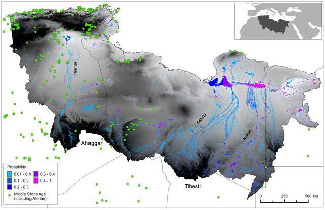 Les spécialistes estiment que l’Homme moderne est sorti d’Afrique il y a 100.000 ans environ, sans que l’on connaisse précisément les voies qu’il a empruntées pour cela. Deux hypothèses coexistent : une dispersion par la mer Rouge, qui emprunte les régions côtières ; ou le long du tracé du Nil à partir de l’Afrique de l’Est, vers le nord. Or si les trois systèmes paléofluviaux identifiés par les chercheurs, aujourd’hui enterrés, ont bien existé à cette période, ils ont pu favoriser une migration humaine à travers le Sahara. La rivière Irharhar, la plus à l’ouest des trois, est la voie la plus probable à cet égard. Quoique active quelques mois par an seulement, elle coule directement du sud vers le nord en reliant de manière continue les zones montagneuses. Ce « corridor », caractérisé par un climat méditerranéen tempéré avec des périodes de moussons, aurait abondé en ressources naturelles.