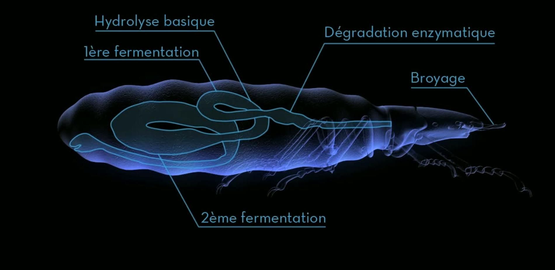 « Bon appétit les termites » Voix off : Les bulles de gaz qui remontent à la surface de ce marais, tout comme les gaz émis par les vertébrés ruminants, sont un processus naturel de dégradation de la matière organique en gaz. On parle, dans ce cas, de méthanisation ou de digestion anaérobie. Cette digestion est due à l’action de micro-organismes, bactéries et protozoaires présents à l’intérieur de certains intestins d’animaux. Dans l’intestin des termites par exemple, plus de 80% de la matière organique est transformée en biogaz, c’est-à-dire en un mélange de méthane et de CO2. Ce rendement est l’un des plus performants que l’on trouve dans la nature. Ne pourrait-on pas alors demain produire du gaz naturel aussi bien que les termites ? Chercheur : L’homme pratique la méthanisation depuis très longtemps. Depuis plus d’un siècle, dans les activités agricoles, les résidus de ces activités agricoles ont été méthanisés pour produire du biogaz. On le fait à l’échelle industrielle. Les déchets organiques, les déchets de supermarché, les déchets verts, les boues d’épuration dans nos stations d’épuration ont un potentiel de production de biogaz. Donc, on les met en œuvre dans des digesteurs anaérobies pour produire du biogaz, une énergie renouvelable, et tout ceci avec un impact environnemental neutre. Donc, ici, au CIRCEE, on mène différentes recherches pour produire plus de biogaz. On peut le faire en optimisant le bon mélange déchets boues de stations d’épuration. On peut travailler aussi sur l’amélioration des performances de la digestion anaérobie. Actuellement, on est limité à environ 50% de dégradation de la matière. On cherche à aller plus loin, à atteindre des rendements de l’ordre de 70 à 80 %. Suez environnement a décidé de se lancer dans une approche assez originale avec différents partenaires, avec l’INRA, avec l’IRSTEA, avec l’IRD, où, en fait, on prend une position plus humble. On essaie d’observer la nature en faisant le constat que la nature ne nous a pas attendu pour produire du biogaz. Beaucoup d’organismes sont capables de produire ce biogaz de matière plus optimale que ce que l’on fait dans nos procédés industriels. Voix off : Ces chercheurs ont étudié le tube digestif de plus de 190 organismes afin d’en reproduire les différentes étapes. La termite et la vache sont les deux animaux qui ont été retenus du fait de leur performance particulière dans la production de méthane. Chercheur : La termite est un des organismes qui produit le plus de méthane au monde, et à partir de matière difficile à dégrader, des matières cellulosiques. Et la vache a aussi un processus intéressant de digestion, la rumination, qui permet de digérer, en quelque sorte, la matière plusieurs fois. Une première approche à consister à étudier le tube digestif des termites et à le décomposer en différentes étapes que nous avons testées dans différentes cuves à l’échelle laboratoire, dans des réacteurs anaérobies, et avec différentes étapes de prétraitements. Et, en combinant ces différentes étapes, nous avons mesuré de manière précise la quantité de biogaz généré. Une deuxième approche a été d’étudier les bactéries présentes dans les tubes digestifs des termites puisque ce sont elles qui produisent le biogaz. Donc, avec différentes techniques biologiques, génomiques, nous avons cherché à identifier les bactéries présentes et celles qui s’expriment le mieux pour produire du biogaz. Il reste encore de nombreuses étapes avant de comprendre parfaitement ces processus pour la mise en œuvre industrielle des solutions, pour qu’elles soient économiquement viables. Mais, compte tenu de l’enjeu, d’une quantité de déchets qui augmente sans cesse, du gisement potentiel présent dans ces déchets, si on prend l’exemple de suez environnement et des 80 digesteurs que nous exploitons, c’est un potentiel de production d’énergie équivalant à un réacteur nucléaire. Voix off : Dans un monde qui produit de plus en plus de déchet, une méthanisation plus performante inspirée de la nature représente l’une des solutions les mieux adaptées à la préservation de notre environnement.